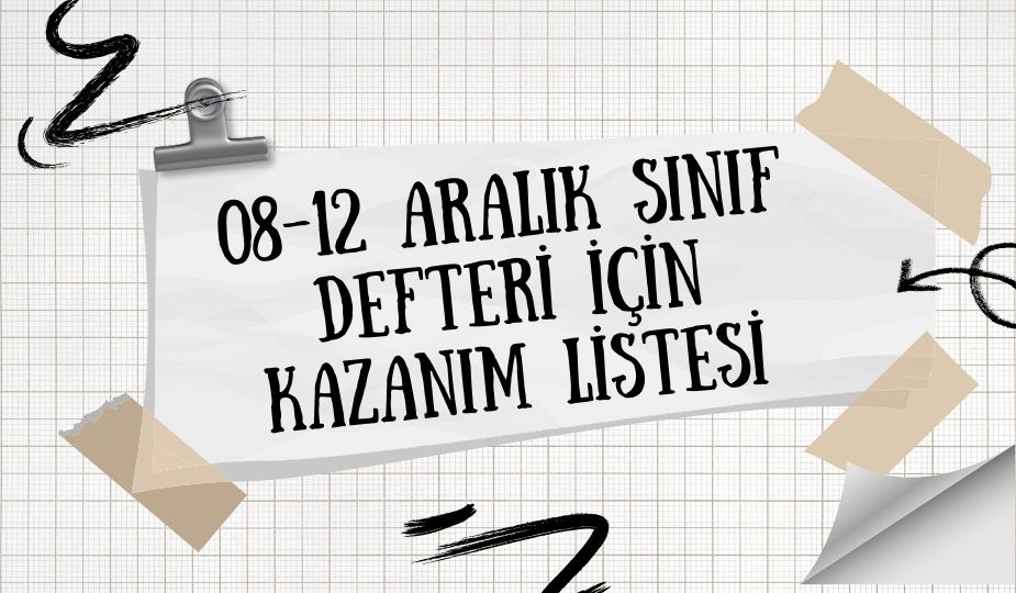 08-12 aralık haftası sınıf defteri için kazanım listelerimiz hazırlandı. Listeleri aşağıdan indirebilirsiniz.
